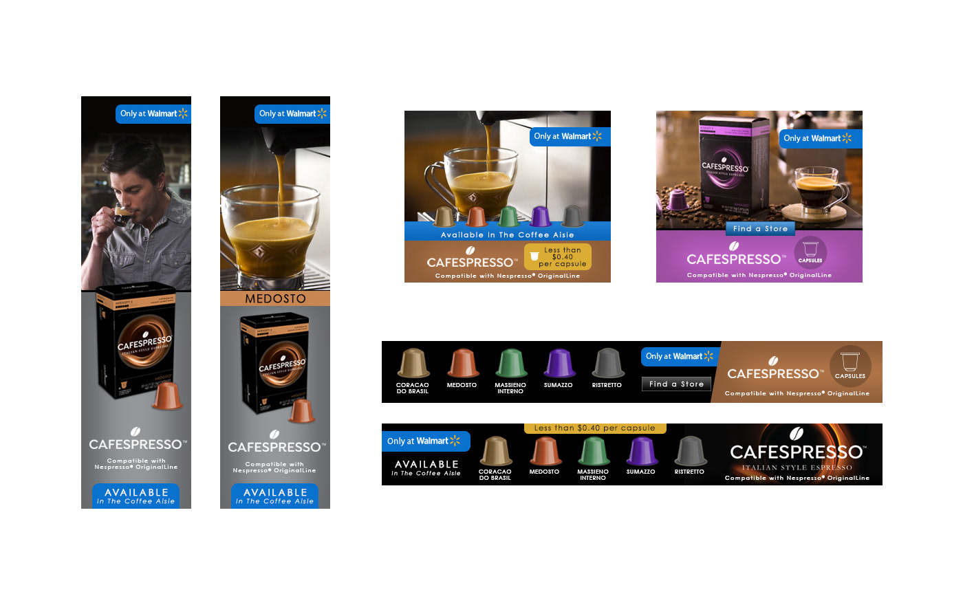 CAFESPRESSO was considering selling their product in Walmart Stores. These Ads were designed to create awareness of their Nespresso compatible capsules.